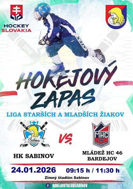 V 6. kole nadstavbovej časti Ligy starších a mladších žiakov A, región Východ dňa 24.01.2026 odohrali žiaci HK Sabinov domáce hokejové zápasy. Ich súperom im boli rovesníci z Mládež HC 46 Bardejov. Na domácom ľade mladší žiaci vyhrali 6:0, starší žiaci súperovi podľahli 3:13.